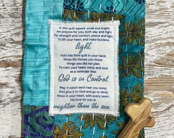 Prayer Quilt Square - Christian Encouragement, Faith Gift, Anxiety Relief, Scripture Keepsake, Spiritual Gift, Upcycled Quilt
