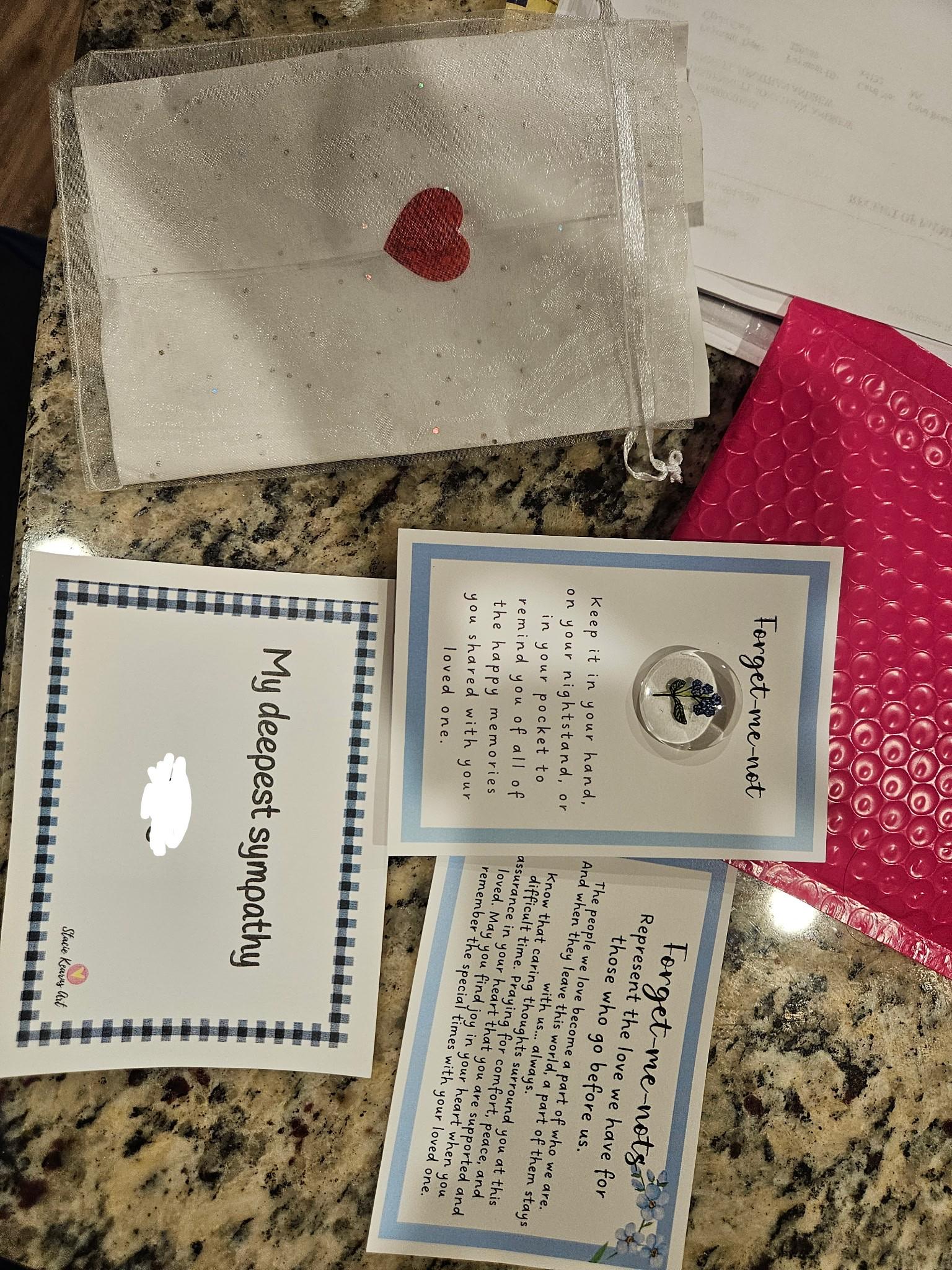 A Heartfelt Tribute to Cherished Memories - Offer a heartfelt gesture of comfort and remembrance with our exquisite Forget-Me-Not glass gem. Each unique memorial pocket gem is hand-painted with the delicate beauty of the Forget-Me-Not flower, symbolizing enduring love and cherished memories. Perfect sympathy give for anyone experiencing the profound loss of a loved one. It serves as a gentle reminder that even though someone is no longer physically present, their love and spirit remain always near.