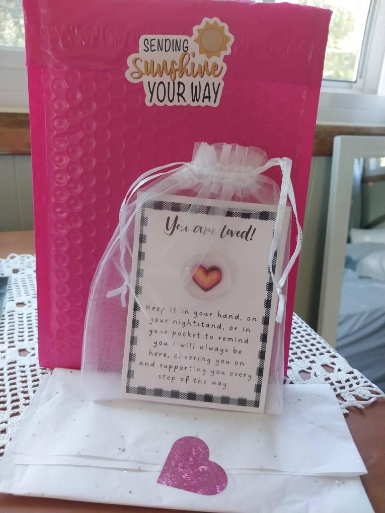 Inspirational Glass Gem/Pocket Token: Beautiful 1-inch hand-painted multi-color heart gem/token. A small keepsake symbolizing love, courage, and new beginnings.