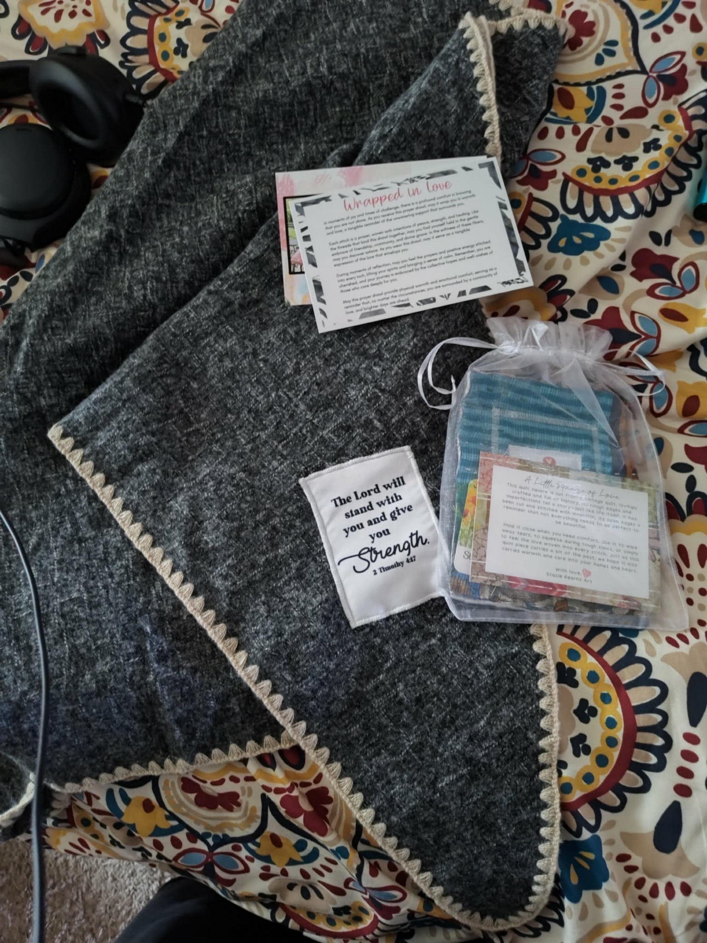 Quilt Square: Beautiful 5x5 teal prayer quilt square. Hold it close when you need comfort, love, warmth, and support.