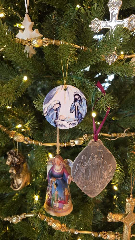 Printed on both sides for a beautiful view from every angle, this 3-inch round ornament adds a peaceful, faith-filled touch to your Christmas tree and makes a meaningful gift for family, friends, church members, or anyone who loves Christ-centered holiday décor.